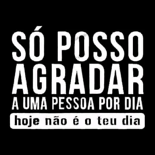 Um texto em branco sobre fundo preto que diz 'SÓ POSSO AGRADAR A UMA PESSOA POR DIA' com uma linha adicional 'hoje não é o teu dia'.