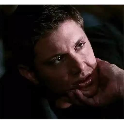 Rosto de um homem com expressão de surpresa ou choque, mão no queixo, fundo escuro.