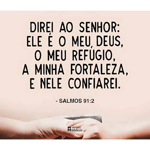 Mãos dadas com uma citação do Salmo 91:2 em preto sobre fundo claro. O texto diz 'Direi ao Senhor: Ele é o meu Deus, o meu refúgio, a minha fortaleza, e nele confiarei.'
