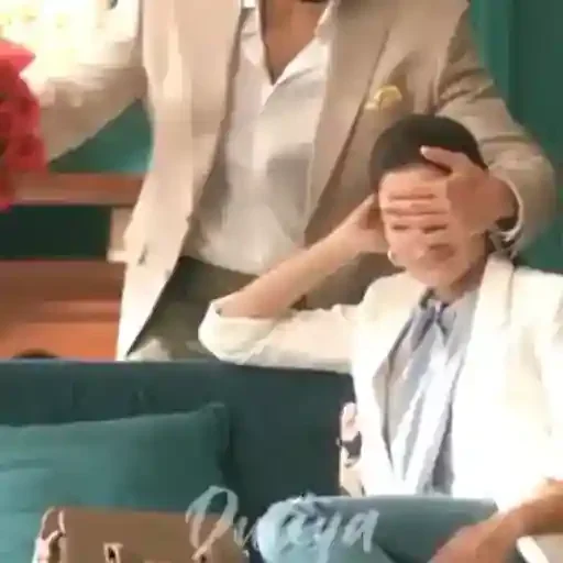 Uma mulher sentada em um sofá com a mão na testa e um homem atrás dela, também com a mão na testa, ambos com expressões faciais engraçadas.