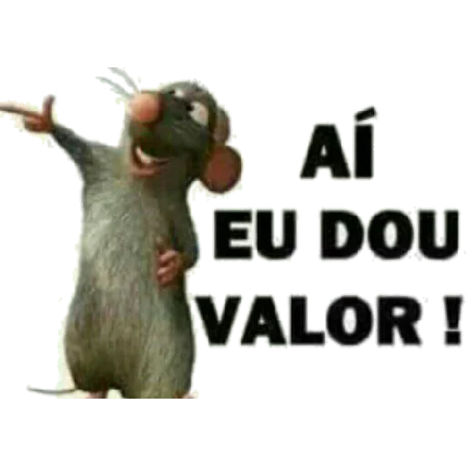 Rato cinza com expressão confiante aponta para o lado enquanto diz "Aí eu dou valor!"