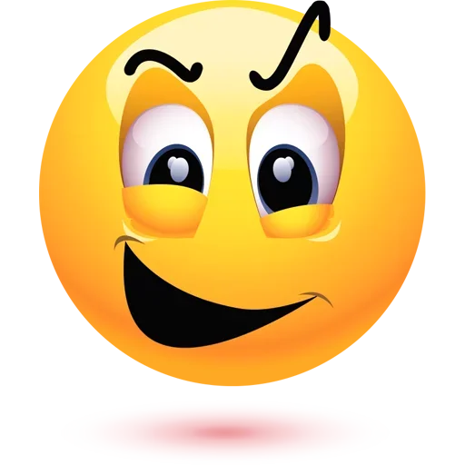 Um emoji amarelo com um sorriso malicioso e sobrancelhas levantadas, parecendo zombar ou fazer uma careta engraçada.