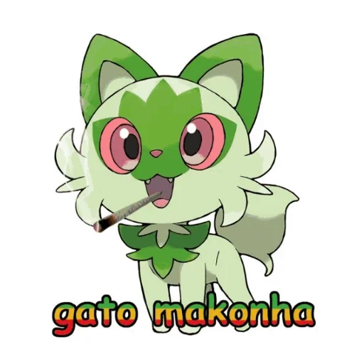 Um gato cartoon verde com olhos grandes e rosa, fumando um cigarro, com o texto 'gato makonha' abaixo.