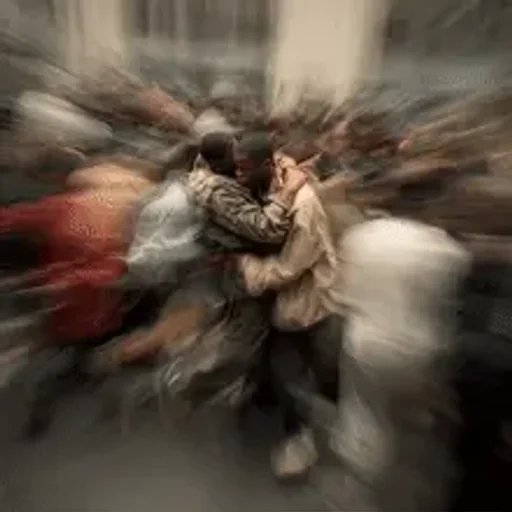 Um casal se abraçando em um fundo desfocado, com movimento aparente.
