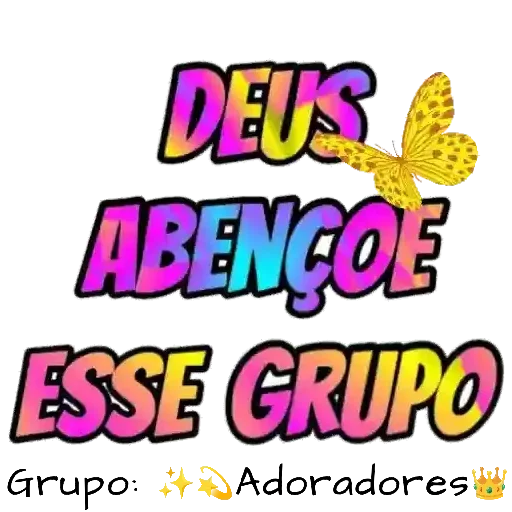 Uma borboleta amarela com asas abertas sobre as palavras 'DEUS ABENÇOE ESSE GRUPO' coloridas em arco-íris.