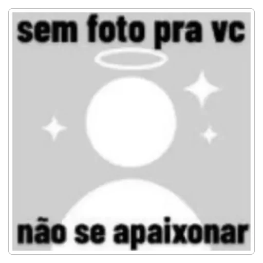 Uma figura branca com auréola e estrelas ao fundo, com o texto 'sem foto pra vc' na parte superior e 'não se apaixonar' na parte inferior.