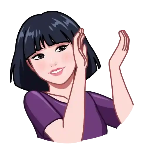 Uma jovem mulher com cabelo preto e franja, vestindo uma blusa roxa, fazendo um gesto com as mãos perto do rosto, parecendo surpresa ou confusa.