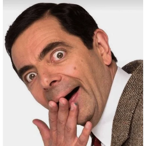 Homem com expressão surpresa e mão na boca, parecendo segurar um segredo. Ele tem cabelo preto, olhos arregalados e sobrancelhas grossas.