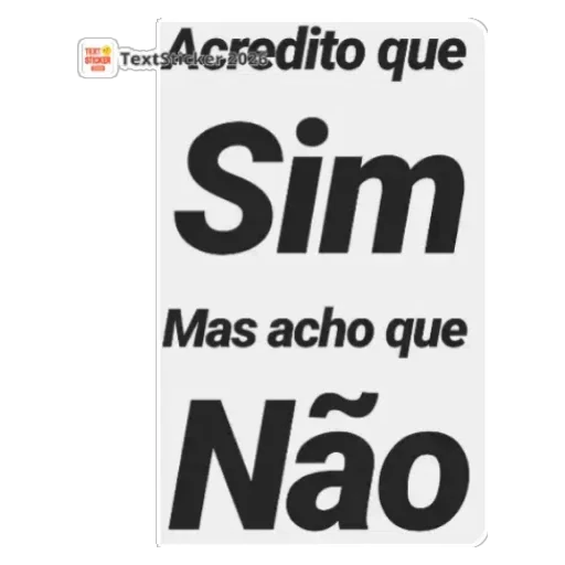 Um retângulo branco com texto em preto. De cima para baixo, o texto é: 'Acredito que', 'Sim', 'Mas acho que', 'Não'.