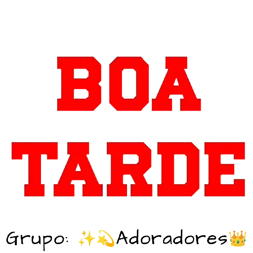Um sticker com a frase 'BOA TARDE' em letras grandes vermelhas e o texto 'Grupo: Adoradores' em menor, com emojis de estrela e mão.