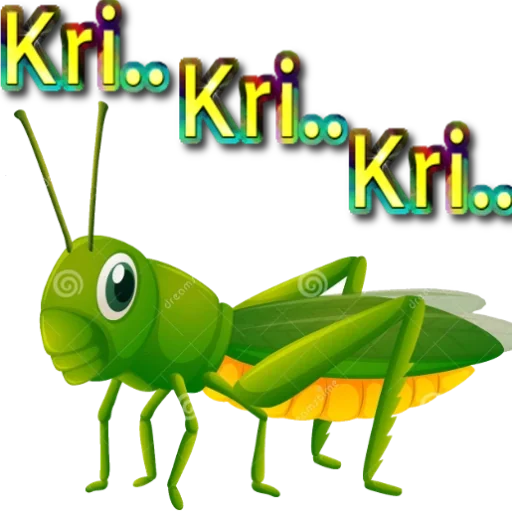 Um gafanhoto verde com olhos grandes e antenas, com o texto 'Kri... Kri... Kri...' acima.