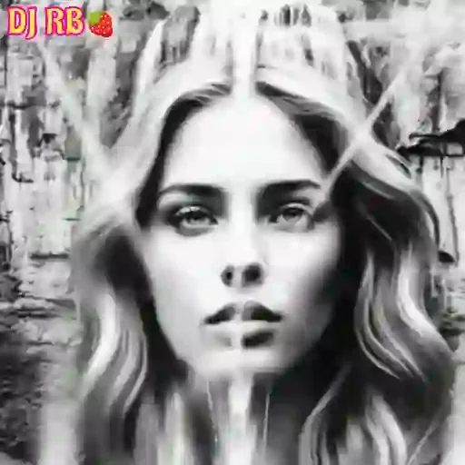 Rosto de uma mulher com cabelos longos e ondulados, olhar sério e fundo cinza com linhas brancas diagonais. No canto superior esquerdo, 'DJ RB' em letras vermelhas.