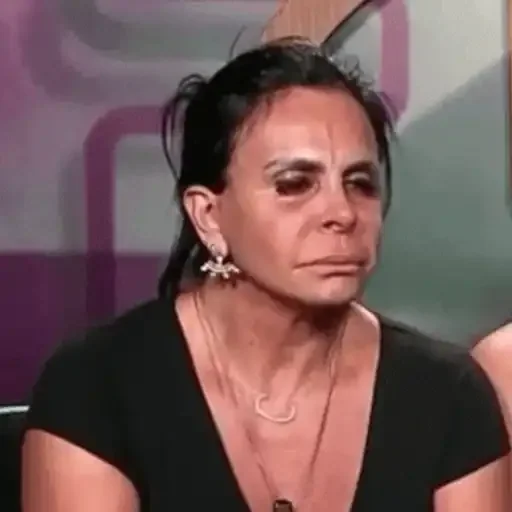 Rosto de uma mulher com expressão séria e ligeiramente desapontada, com o cabelo escuro preso.