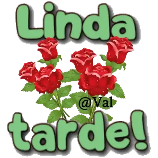 Um buquê de rosas vermelhas com a frase 'Linda tarde!' em letras verdes.