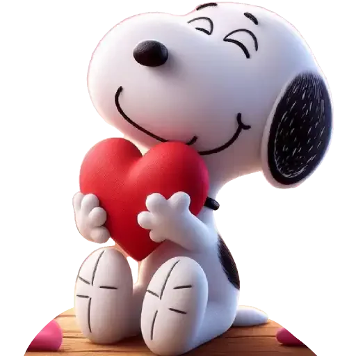 Snoopy, o cachorro da Peanuts, sentado com um coração vermelho