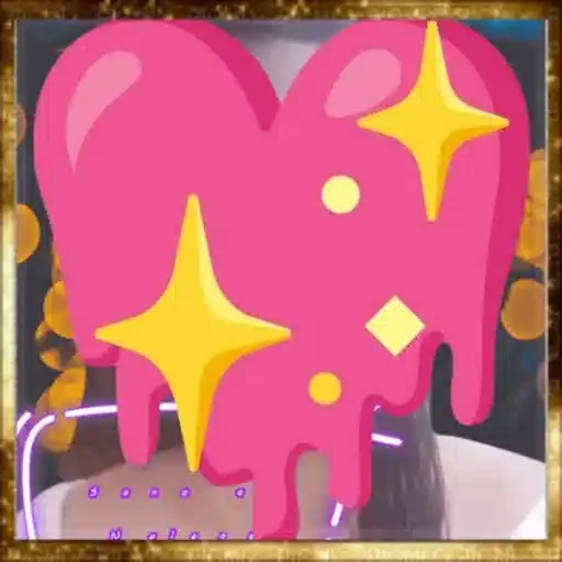 Coração rosa com glitter e estrelas amarelas, pingando como se fosse derretido.