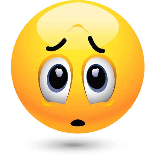 Rosto de emoji amarelo com expressão de surpresa e preocupação, olhos arregalados e sobrancelhas franzidas.