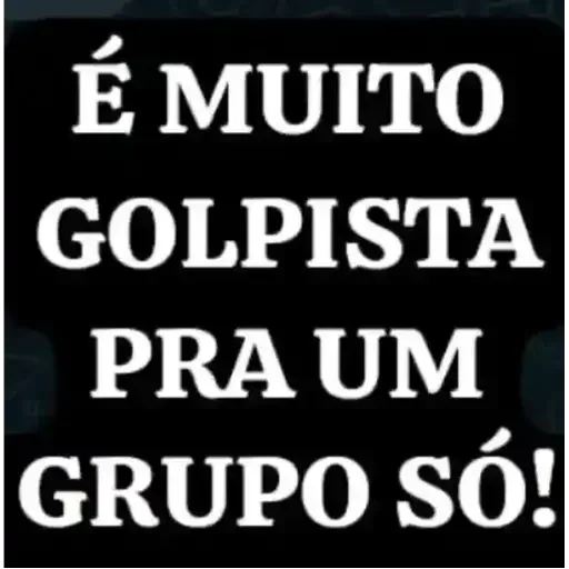 Um texto em branco em um fundo preto. A frase 'É MUITO GOLPISTA PRA UM GRUPO SÓ!' aparece em letras maiúsculas brancas.
