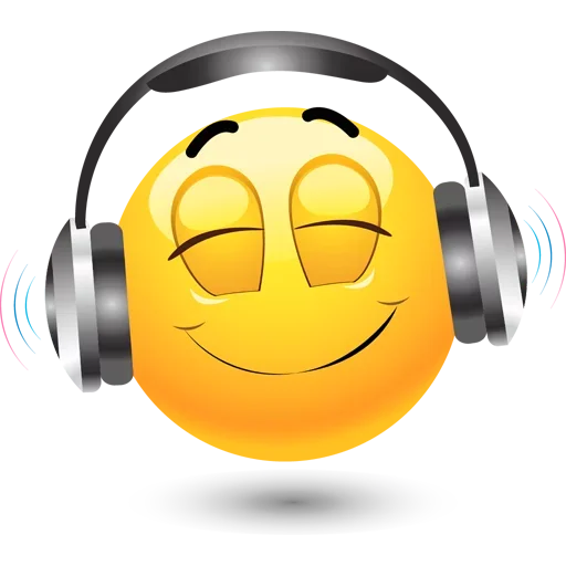 Um emoji de rosto sorridente com óculos de realidade virtual e fones de ouvido, com os olhos fechados e expressão de relaxamento.