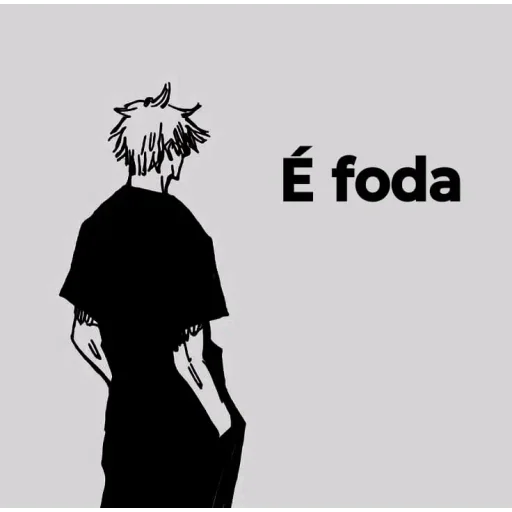 Um personagem de anime de costas, com o cabelo desarrumado e uma expressão de desânimo. Ao lado, está escrito 'É foda'.