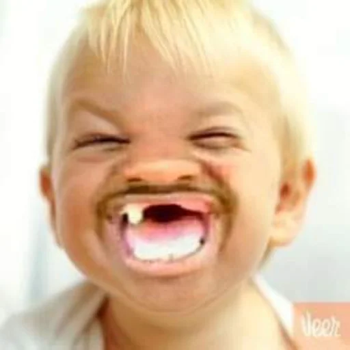 Rosto de bebê com os olhos fechados e expressão de desaprovação ou nojo.