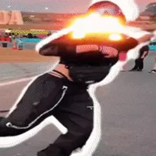 Personagem de anime correndo com efeito de luz e chama saindo do corpo, usando roupas pretas.