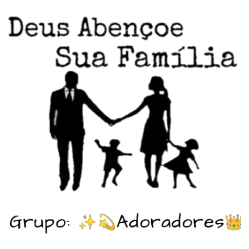 Uma família de quatro pessoas, com texto 'Deus Abençoe Sua Família' e 'Grupo: Adoradores'.