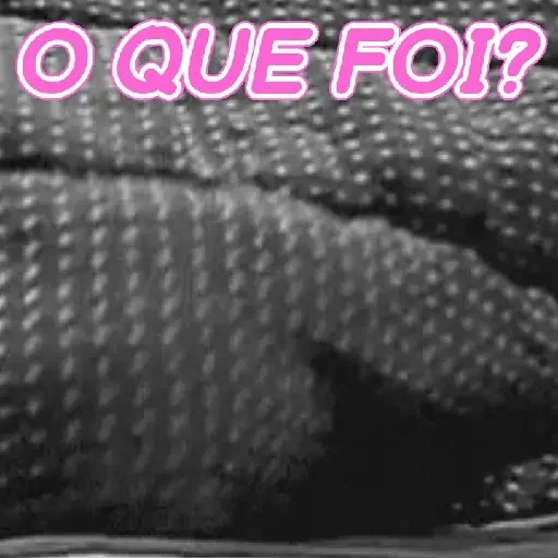 Uma imagem em preto e branco com texto rosa que diz 'O QUE FOI?'
