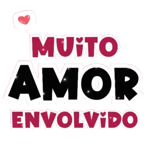 Um coração rosa e as palavras 'MUITO AMOR ENVOLVIDO' em letras grandes e coloridas.