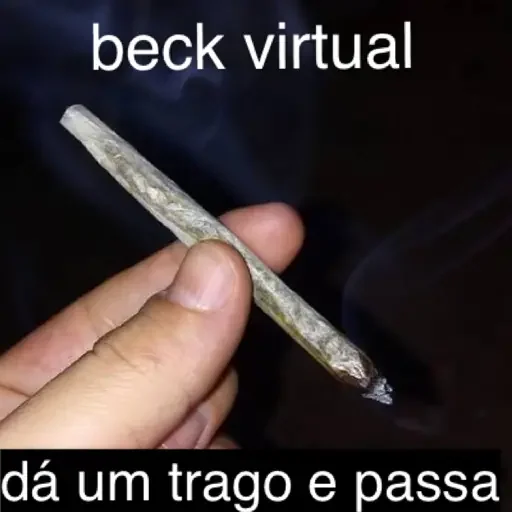Mão segurando um cigarro de maconha com texto 'beck virtual' e 'dá um trago e passa'