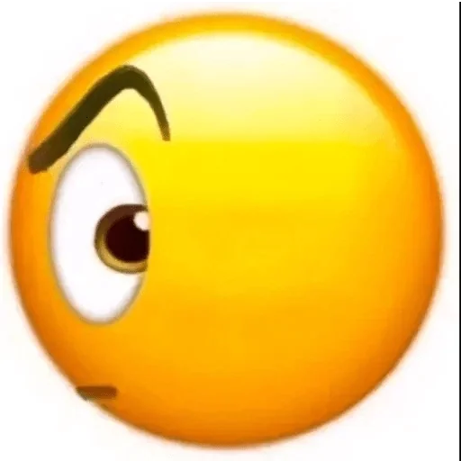 Rosto de emoji amarelo com sobrancelha levantada e olhar lateral, parecendo surpreso ou cético.
