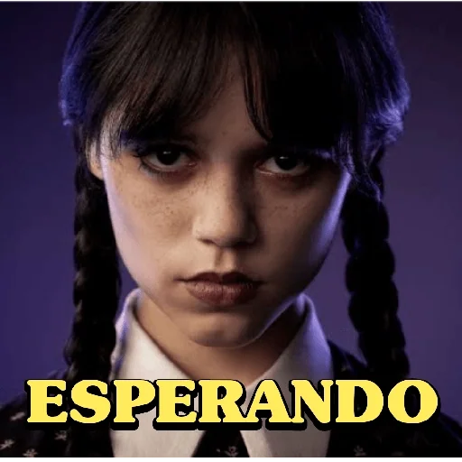 Rosto de uma menina com tranças e olhar sério, vestindo um uniforme, contra um fundo roxo escuro. A palavra 'ESPERANDO' aparece em destaque na parte inferior.