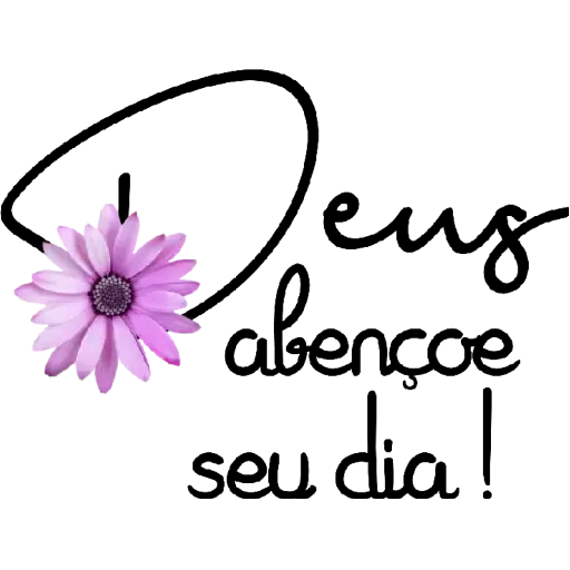 Uma flor roxa ao lado da frase 'Deus abençoe seu dia!' escrita em cursivo.