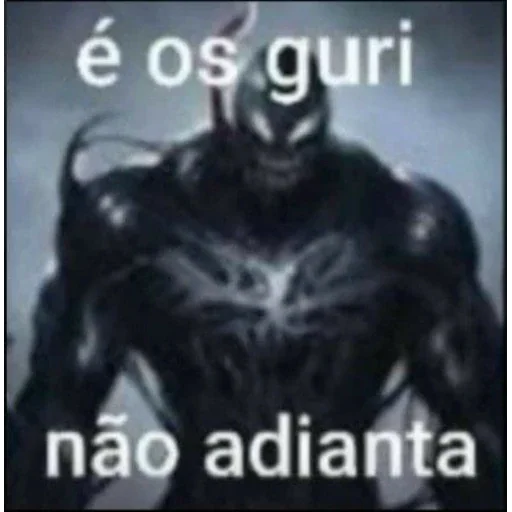 Um personagem de aparência sombria e musculosa, com máscara e olhos brancos, em um fundo cinza. Sobreposto com o texto 'é os guri não adianta'.
