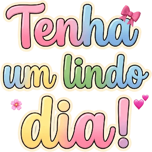 Um texto colorido que diz 'Tenha um lindo dia!' com flores e corações.