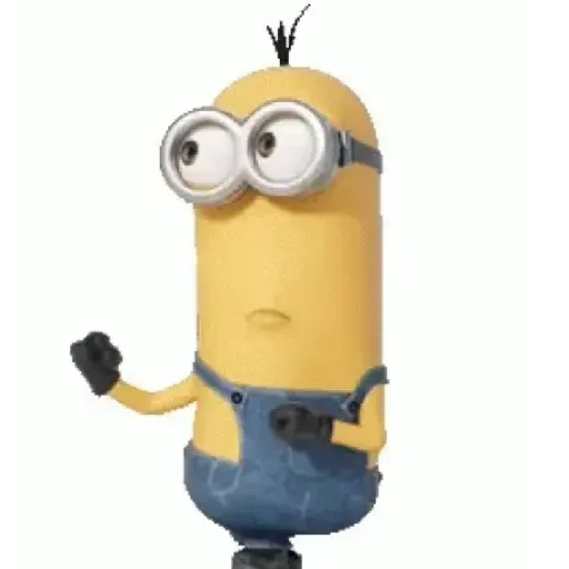 Minion com expressão confusa ou surpresa, usando óculos e macacão azul, com a mão levantada.