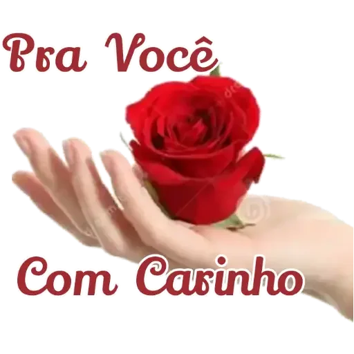 Uma mão estendida oferecendo uma rosa vermelha com as palavras 'Pra Você Com Carinho' escritas em vermelho.