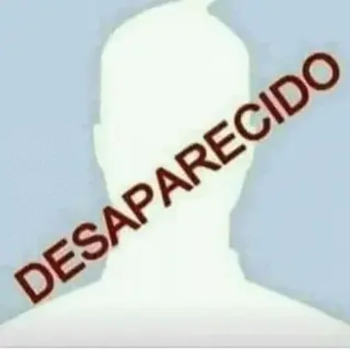 Silhueta de uma pessoa com o texto 'DESAPARECIDO' sobreposto em vermelho.