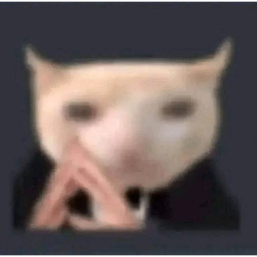 Gato com expressão pensativa, mão no queixo, fundo escuro.