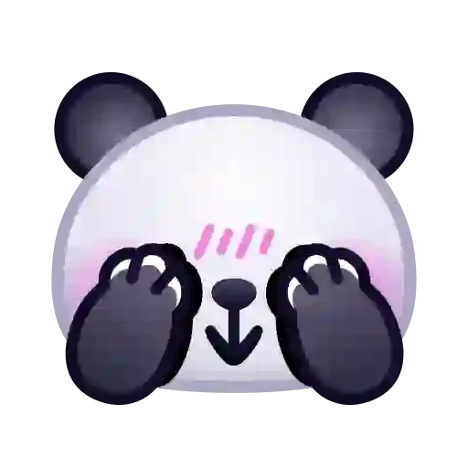 Rosto de um panda com as mãos cobrindo os olhos, expressando vergonha ou surpresa, com listras rosadas acima dos olhos e bochechas cor-de-rosa.
