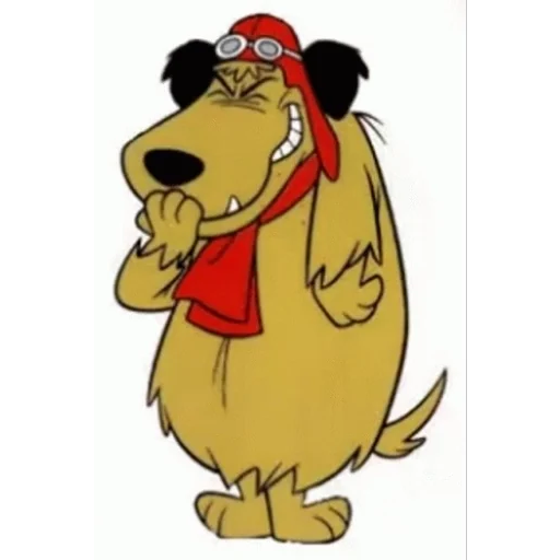 Cachorro amarelo com bandana vermelha e óculos de piloto, com expressão pensativa e mão no queixo.