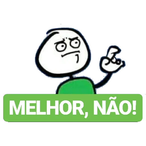 Um personagem de desenho simples com expressão de desaprovação, fazendo um gesto com a mão. Abaixo dele, um retângulo verde com o texto 'MELHOR, NÃO!'.