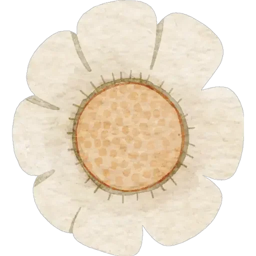 Uma flor branca com centro laranja e detalhes marrons.