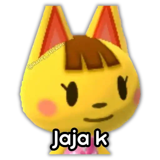 Rosto de um animal amarelo com orelhas de coelho, bangs marrons e texto 'Jaja k' embaixo.