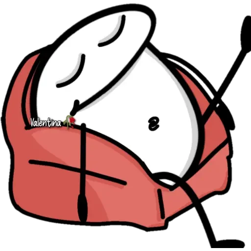 Um desenho de um personagem de anime com a cabeça inclinada para trás e olhos fechados, usando um casaco vermelho. O personagem parece estar relaxado ou dormindo.