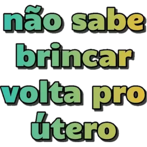 Um texto colorido que diz 'não sabe brincar volta pro útero'. As palavras estão em cores diferentes, como verde e amarelo, com um estilo de letra grande e arredondada.