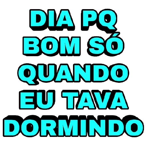 Um texto em letras maiúsculas, azuis e com contorno preto que diz 'DIA PQ BOM SÓ QUANDO EU TAVA DORMINDO'.