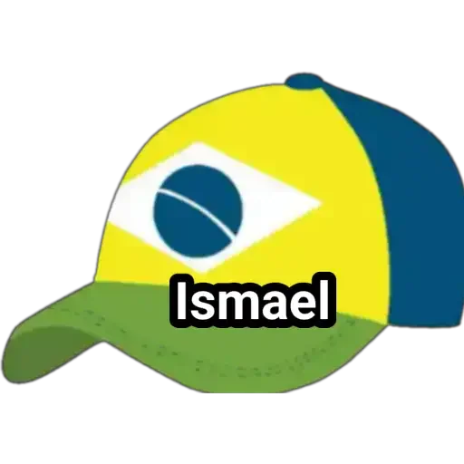 Boné com as cores da bandeira do Brasil e o nome Ismael