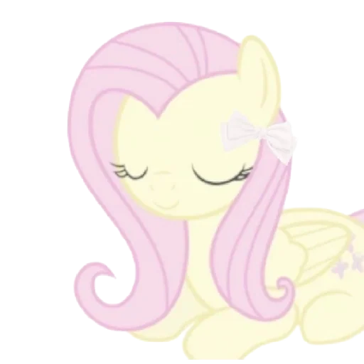 Um pônei de pelagem amarela e crina rosa com os olhos fechados e um laço na testa.