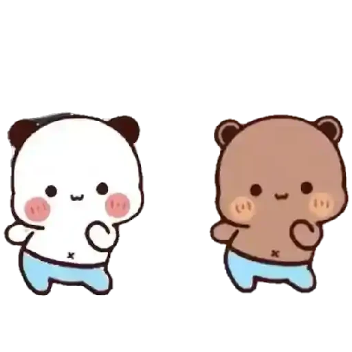 Dois ursinhos fofos, um branco e um marrom, com as mãos na frente do rosto e bochechas rosadas.